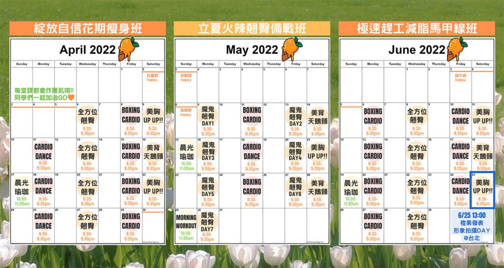 ?4月綻放自信花期瘦身班?跟著孟橙老師精心設計的課表跑,你可以: